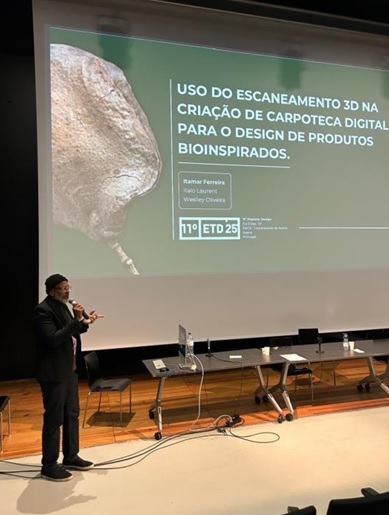 Além disso, participou do 11° Ergotrip Design, onde apresentou seus 3 artigos intitulados: “Brinquedo de balanço bioinspirado na forma do fruto do Pé-de-Pereiro“; “Uso do escaneamento 3D na criação de carpoteca digital para o design digital de produtos bioinspirados” e “Design e manufatura aditiva“.